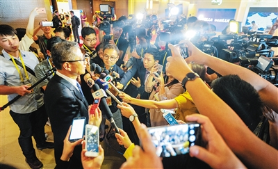 3月24日,博鳌亚洲论坛国际会议中心,媒体采访香港特别行政区政府财政司司长陈茂波。 本报记者 袁琛 摄