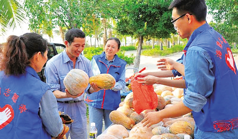 近日,在华能东方电厂厂区门口,一个特殊的“农产品销售点”吸引了大家眼球。原来,这是该厂“三色帆”志愿者服务队在帮助东方市月大村的贫困户销售农产品。