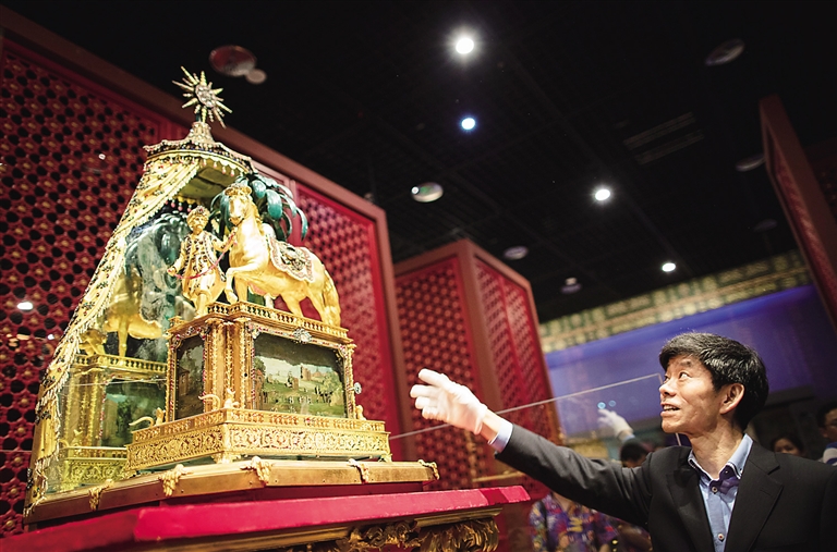 “这件塔钟还有葫芦式钟都已经是孤品了,非常珍贵。”王津告诉记者,不仅如此,葫芦式钟和站马钟还都是头一次“出宫”。