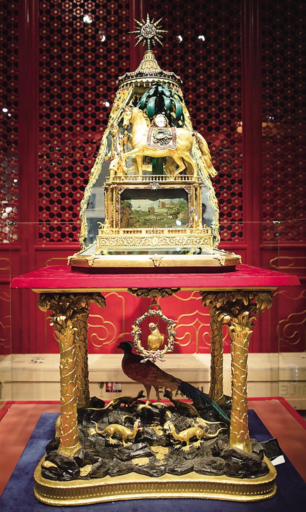 英国钟表多以欧式建筑、自然风光为元素,装饰风格引用当时欧洲流行的哥特式、洛可可式表现手法,钟内各种机械可以连续转动,与布景装饰组合,设计精巧,异彩纷呈。(尤梦瑜)