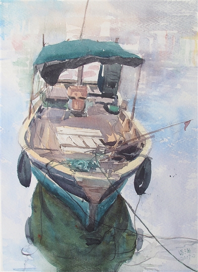 洋浦干冲渔港我已经是第二次来了,春节期间这里的每个角落都洋溢着浓浓的年味,连空气里弥漫的都是鞭炮的硝烟。干冲的渔港比较有特点,这里的海岸线较长,而且在滩涂上还散落着许多的黑石头和仙人掌,这在我们海南其他的渔港是甚少见到的,它们构成了一道别样的渔港风景线。前几年来这里写生,就曾被这些黑石头所吸引,也画了好几幅有关黑石头的作品。此次再度到来,发现整个渔港还是变化了许多。但这些景又像极了印象画派笔下所表现的题材,仿佛让人穿越到当年的法国。我在写生中一直想秉承印象派的画法,因为我觉得海南的光色很适合用印象派的表现手法来体现。虽然也曾听过不少道友的质疑:印象派已经是过时的画法了,你还死抱着它干么?我觉得没有过时的画法,只有固封的观念。可当我满怀信心去表现这些景象时,结果却出乎我预料之外。画面的颜色和表现都无法体现干冲渔港的特点,更甭说印象派的色彩了。我总觉得渔船是非常难画的,它的色彩和造型都需要一气呵成。如稍再雕琢,船就没有那么生动和精气神了。每次画船,我都没有把握,所以我画面上的船都显得有些呆滞。看莫奈、毕沙罗等人画船,就显得那么轻松自如,一挥而就,形色皆有,我只有望船兴叹。在海南写生,渔港是一大表现题材,渔船又是其最重要的组成部分,绕是绕不过去的。