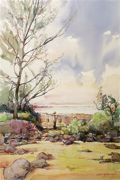 在写生过程中,感触颇深:要想很准确地把这季节及地域的特点表现出来,着实不容易。看身边的画友,他们也在努力用自己的方式来表达海南的光色:林鸿平、洪永锋在坚持他们抒情的光色表现,冯海则选择具有强烈装饰效果的风格,谢斯华用流动的线条来诉说,曾德锋用粗犷的笔触来点燃自己的激情,武彩用雅致的色调来轻轻诉说,林雪和王英姿则沿传统的水彩套路娓娓道来。我在想:在海南写生,如果忽视了对光色的表达,是否失去了在此写生的意义?看过不少内地名家画海南的作品,对吴冠中先生上世纪六十年代来海南写生的那几幅作品印象尤深。他把海南那强烈光色及地域特点表现得淋漓尽致,让观者感受到一股热气扑面而来。