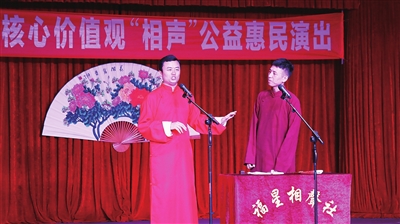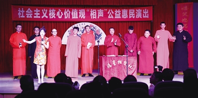 台下熟悉的观众都知道,参与演出的年轻人大都有自己的职业。他们平时在不同的行业从事不同的工作,业余时间就凑在一起排练相声。精心烹制的相声“大餐”,哪一道都没让大家失望过。用观众马惠萍的话来说,“听相声的观众都不一定能坚持这么久,说相声的演员们却从未懈怠,我们都很感动。”