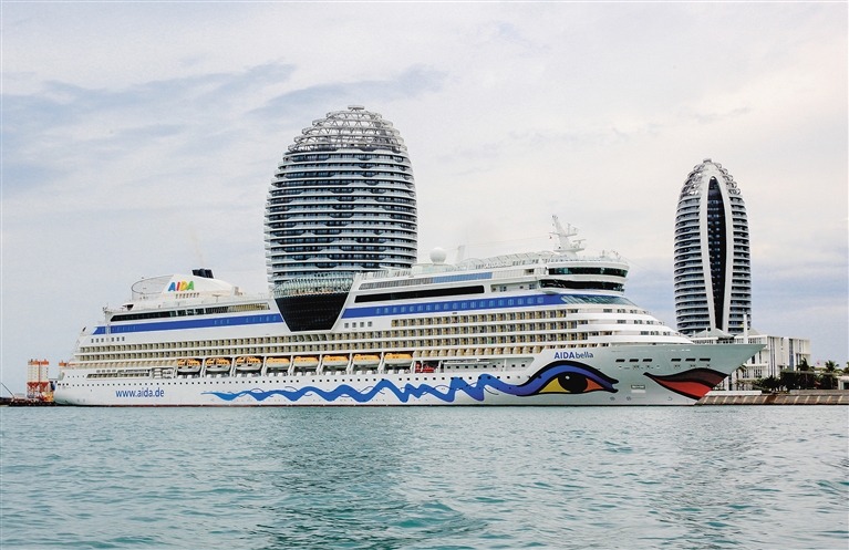 据介绍, “爱达贝拉"号邮轮隶属于哥诗达邮轮分公司——德国爱达贝拉公司,该邮轮吨位6.9万吨, 总长252米,宽32.2米,拥有客舱1025间。 此次该邮轮首次到访三亚, 共带来2007名游客、603名船员,其中,德国籍游客为主体,共计1933名。