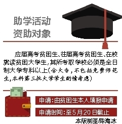 记者了解到,三亚“向贫困宣战助学活动”自2006年7月起实施,11年来已资助贫困大学生8475人次,取得了良好的社会效应。今年“向贫困宣战助学活动”的助学资金将在今年8月至9月,由共青团三亚市委向受助大学生本人发放。