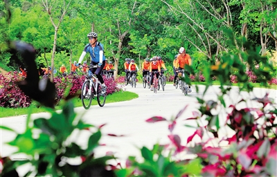 “在这里骑行真的是一种享受!”在骑行爱好者陈宇眼中,不管是刚下飞机那一瞬间的温暖湿润,还是海风吹拂的凉爽惬意,或是椰林中穿行的自在随意,骑行在海南,总会令人心旷神怡、自然放松。