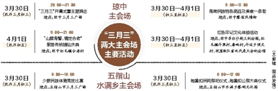 除琼中、五指山市水满乡两个主会场外,各分会场的活动同样精彩纷呈,如五指山分会场,有少数民族传统体育比赛、水满全域旅游推介会、海南首届“国际早春茶开采节”暨五指山红茶春茶品鉴活动等十多项活动;三亚分会场将开展少数民族传统体育竞技比赛、黎锦苗绣技艺比赛等活动;白沙分会场开展“三月三”篝火狂欢节主题文艺晚会活动、长桌宴及民歌对唱、白沙特色旅游产品展、白沙系列民俗旅游活动之房车露营暨帐篷露营活动等;中央民族大学分会场和天津科技大学分会场将分别举办联欢晚会、少数民族传统体育比赛、海南民族风情摄影展等活动。