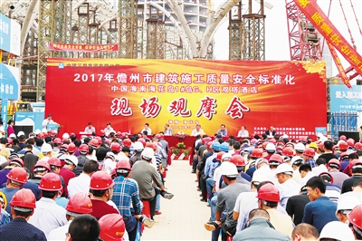 通过此次观摩,加强了儋州市各建设项目之间的相互交流,取长补短,提高了各建筑企业的管理水平,有效推进了儋州建筑施工质量安全标准化管理工作,对全面提升儋州市建筑施工质量安全管理水平起积极促进作用。策划/李亚丹 撰文/张慧