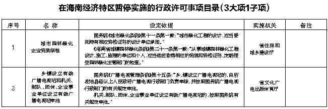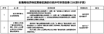 | 海南省人民代表大会常务委员会关于 在海南经济特区暂停实施部分行政许可事项的决定 | |