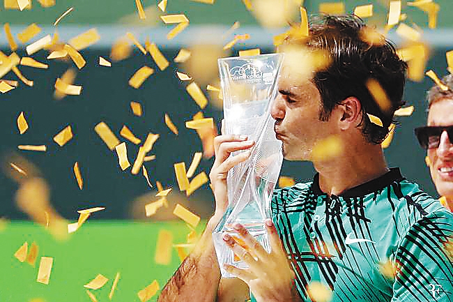 在迈阿密大师赛33年的历史上,费德勒成为最年长的男单冠军得主。