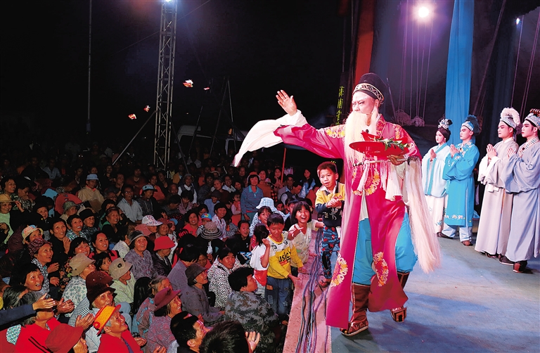 4月2日晚,省琼剧院一团送戏下乡剧组来到定安县翰林镇良星村委会古井村,为该村群众送上琼剧《汉武之恋》的精彩演出。当晚,在村口广场上,观众人头攒动,场面热闹非凡,附近各村群众也赶来欣赏,省琼剧院一团演员们投入的表演,令满场观众直呼过瘾。