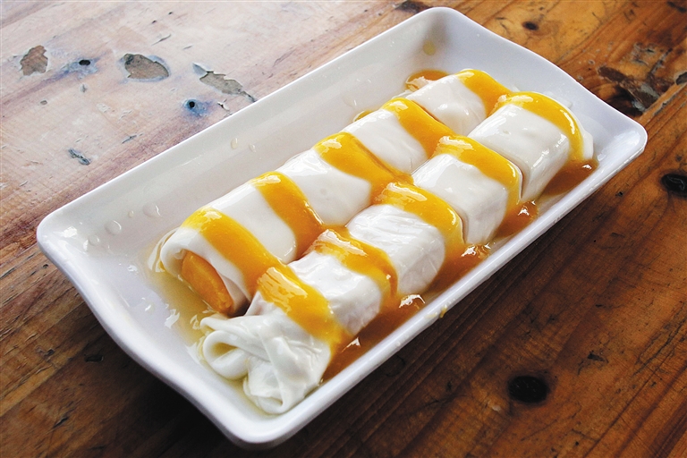 时下正值芒果成熟的季节,大颗的芒果果香浓郁,汁水甘甜。琼海凉爽杂粮店的芒果肠粉,这一次也以惊艳和美味,走进了美食园。