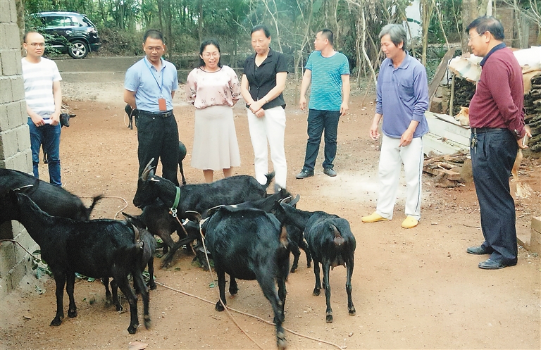 日前,海口市政协深入遵谭镇走访慰问贫困户。在贫困户周贞智家中,看到刚放养回来的19只健壮黑山羊,帮扶人员鼓励周贞智要继续努力干,巩固脱贫成果。
