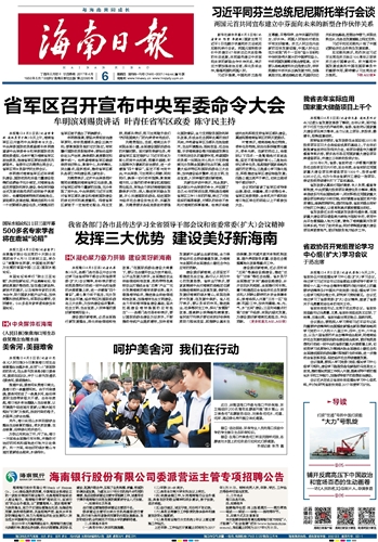 海南日报 头版 001 2017-04-061 2017年04月06日 星期四