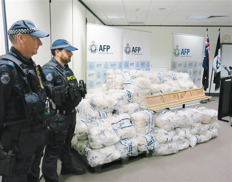澳大利亚联邦警察局5日在墨尔本宣布,澳警方破获了该国历史上最大的冰毒走私案,共查获冰毒903公斤,两名男子被起诉。