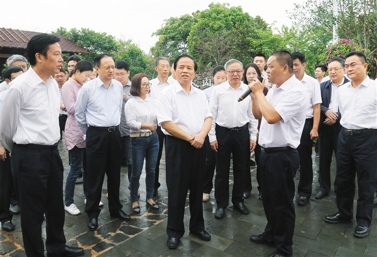 刘赐贵要求,牢固树立以人民为中心的思想,把抓党建同脱贫攻坚、推进全域旅游、建设美丽乡村等重点工作相结合,以党建促发展。要进一步推动全面从严治党向基层延伸,切实抓好思想作风建设。刘赐贵强调只有把老百姓放在心上,与群众保持血肉联系,畅通同群众的沟通渠道,就好比人打通了经络“通则不痛,痛则不通”,才能扎实推进各项工作。