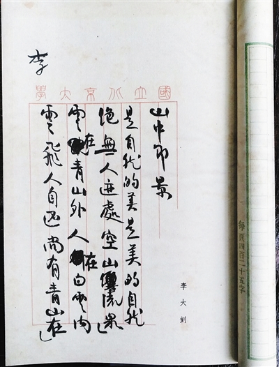 白云、流泉、奇俏美景,李大钊清丽疏古的字迹从百年前的青山水云中款步走来,满是书香幽幽;地球、月亮,刻骨相思,胡适那“一分钟绕地球三千万转”的“心头一念”,透过蓝底古朴的线装书,温柔了时光。