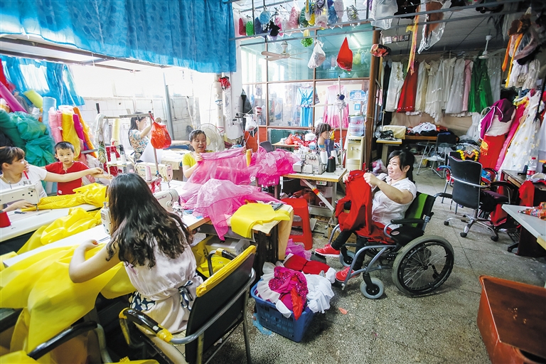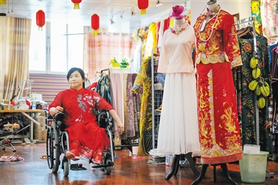 在爱心骑楼旗袍文化有限公司,像李晓蕾、王妚妹这样的员工,还有21名残疾人。