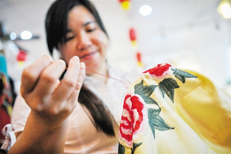 回忆起过往,王妚妹忍不住落泪:“这些都是过去的事了,现在我在公司做绣工,有时也兼职卖旗袍,一个月至少能挣1600元,还有交五险一金。这些在以前,我想都不敢想。”