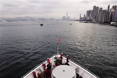 4月9日,“决心”号抵达香港维多利亚港招商局码头。 由我国科学家主导的第三次南海大洋钻探“上半场”IODP367航次圆满结束。4月9日,“决心”号大洋钻探船停靠香港维多利亚港招商局码头,为开展“下半场”IODP368航次进行物资补给和人员交换。新华社记者 张建松 摄