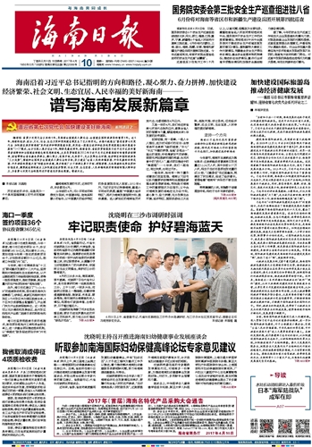 海南日报 头版 001 2017-04-101 2017年04月10日 星期一
