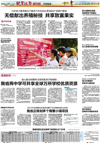 海南日报 脱贫攻坚进行时特别报道 004 2017-04-101 2017年04月10日 星期一