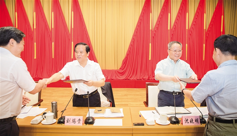 会上,刘赐贵、沈晓明代表省委、省政府与五指山、临高、保亭、琼中、白沙等5个国家重点贫困市县的市县委书记、市县长签订了2017年脱贫攻坚责任书。其余市县负责人会后也全部签订脱贫攻坚责任书。