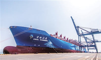 4月10日,“中海之夏”号集装箱货轮准备从大连港起航奔赴美国西雅图。 当日,大连至美国西部集装箱远洋干线在大连港开通,集装箱货轮自大连港出发,经连云港、上海、宁波后直达美国西部,航程时间19天,航班频率为每周一班,运输的主要货种为粮食、木制品、机电产品与电子产品等。 新华社发