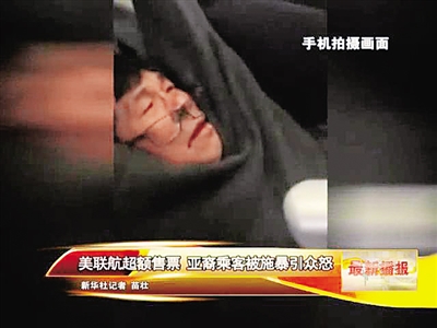 机组人员叫来机场保安,随后发生的事情令人惊讶。3名保安在劝说无果后强行将这名乘客拖下飞机。布里奇斯妻子拍摄的视频显示,在被拖拽过程中,这名华裔男乘客大声惨叫,嘴角磕破出血,眼镜几乎掉落,衬衫被拉拽使得肚皮裸露……