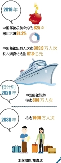 “邮轮旅游收入带动巨大的经济效益,接待母港邮轮带来的旅游收入与常规旅游收入相比,具有明显的优势。”宋丹瑛说。不少专家学者也表示认同,他们建议,进一步制定包括邮轮经营、邮轮码头配套建设的相关发展规划,逐步健全邮轮制造的产业链,同时打造具有吸引力的邮轮旅游目的地,开发邮轮旅游产品,开辟邮轮旅游航线。此外,要积极培育消费市场。一方面要向外国游客进行营销宣传,在航线中增加中国元素和地方特色,吸引更多的国际邮轮旅客入境旅游;另一方面要加强对国内游客的邮轮旅游宣传,让他们了解、接受,并加入邮轮旅游的行列。