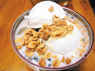 对于海南来说,夏天最不能少的是清补凉。除了海鲜,外地游客光顾最多的就是清补凉了。据说,清补凉最初只是椰子水加上红豆绿豆一些简单的原料,上个世纪20年代,归来的华侨带回了南洋的通心粉,也加在了清补凉里,后来又有薏仁、西米露等多达20多种配料,随客人的喜好随意搭配。