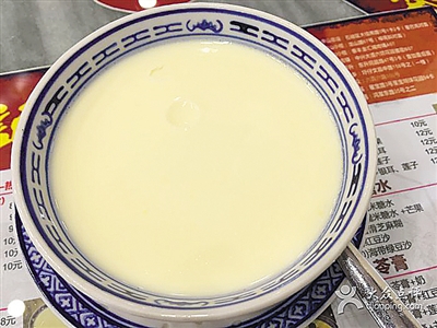所谓姜撞奶,“撞”是关键。上菜本身就是一个神奇的过程:只见服务员端上来白底青花的小碗,上面盖上碟子。随后,小妹又拿着铝制的水壶过来,打开碗盖。一瞬间,辛辣的姜味扑鼻而来,还未沁入心脾,碗中已被倒上满满的热乎牛奶,这时小妹就会嘱咐一句:“不要动,稍等一会儿”。看来美食确实需要等待。聊天谈笑间,碗中的姜汁和牛奶已发生奇妙的碰撞,甜与辣在短暂的时光中逐渐融合……打开盖子,既像布丁又像水蛋的姜撞奶就呈现在眼前。可不要心急搅动哦,在它的凝结状态下一勺一勺慢慢品尝吧。爽滑的口感中,姜的热辣在舌尖绽放,牛奶的香甜又在喉间流转,姜汁和奶味交缠得刚刚好,让人欲罢不能。简单的姜汁和牛奶,就能碰撞出浓郁芬芳、风味独特嫩滑甜品,怎能不佩服这样美味又有趣的存在呢?