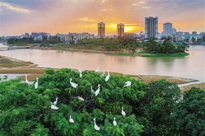 4月7日,海口市美舍河湿地公园凤翔段引来白鹭栖息。 本报记者 李幸璜 通讯员 龙泉 摄