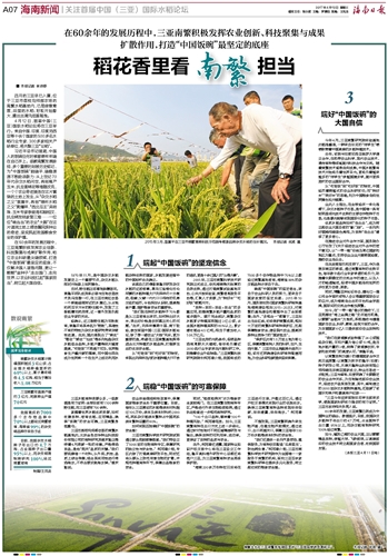 第007版 : 关注首届中国(三亚)国际水稻论坛