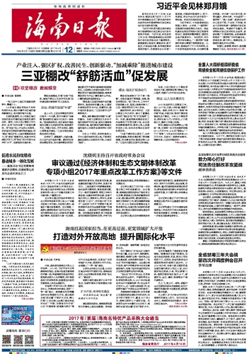 海南日报 头版 001 2017-04-121 2017年04月12日 星期三