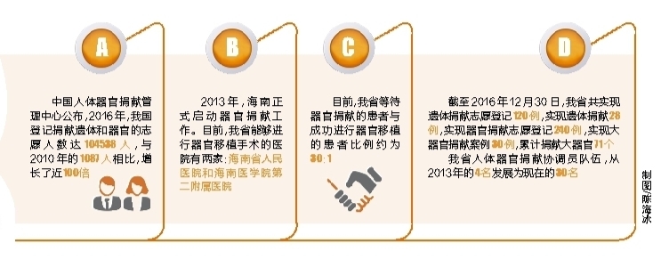 “现在,除了在红十字会进行书面志愿登记,还可以通过中国人体器官捐献管理中心的官方微信、中国人体器官捐献管理中心网站等方式进行志愿登记,器官捐献志愿登记工作方便了很多。”省红十字会工作人员说,近两年,随着相关宣传工作的不断推广,群众的观念也在逐渐发生改变,海南进行器官捐献志愿登记的人数也在翻倍地增长。