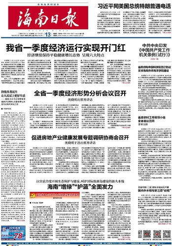 海南日报 头版 001 2017-04-131 2017年04月13日 星期四