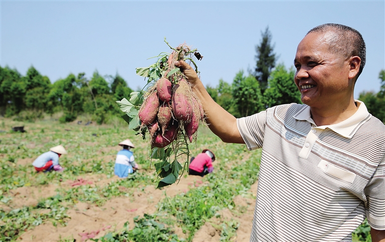 除了有科技力量支撑,儋州市委、市政府对海头地瓜产业大力扶持。在种植环节,儋州农业部门无偿提供地瓜种苗、肥料,引导建档立卡贫困户参与种植;在品牌推广环节,该市拨出专项品牌资金,引导企业和合作社采取“线上线下”等多渠道并进的营销模式,不断擦亮海头地瓜品牌。
