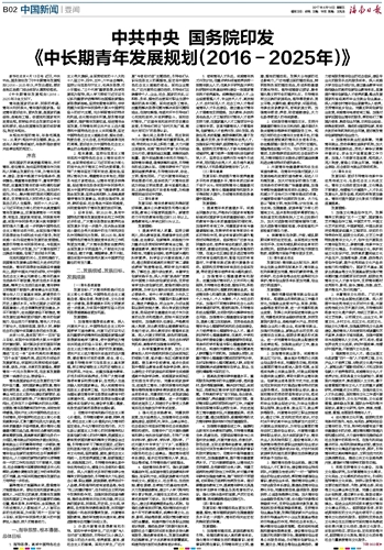 中共中央 国务院 印发《中长期青年发展规划 (2016-2025年)》
