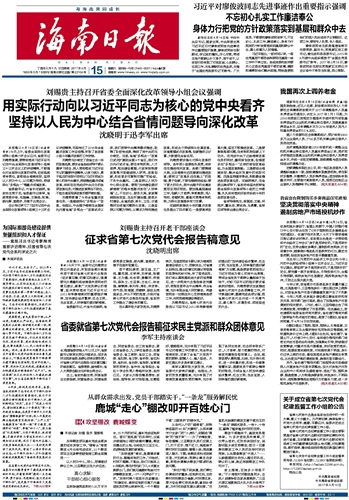 海南日报 头版 001 2017-04-151 2017年04月15日 星期六