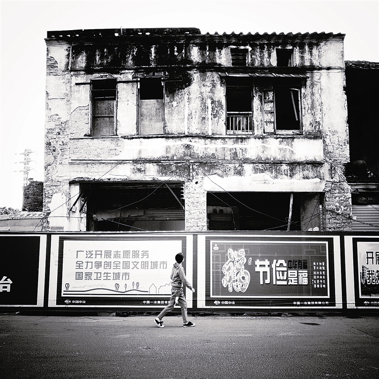 在一张照片中,孔祥标记录了一个年轻人不经意间仰望改造中的老房子的身影。路过这间老房子时,他自己已经被它所渲染的沧桑氛围感染,不禁开始思考,旧屋与人之间能发生怎样的故事。于是,他停下脚步,等待来往的行人与老房子产生互动。“终于,我看到一个年轻人不经意仰望老房子,这样苍老与年轻的互动别样动人,于是我马上举起手机,记录下这个瞬间。”