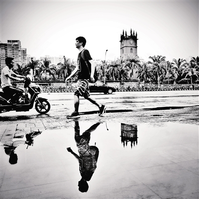 在孔祥标的镜头中经常出现海口的骑楼老街,说不清是因为他对于老街的好感,还是因为老街历经时间洗涤,藏匿在每一块砖瓦中的历史感使然。他说;“在老街,可以发现一种或冲突或颓唐的美感。”