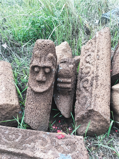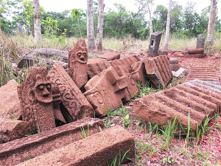4月12日下午,海南日报记者跟随海南大学社科中心研究员阎根齐来到挖掘出石头部件的现场,经初步勘定,阎根齐表示这应是建于明末年间,为墓前所立的石牌坊。