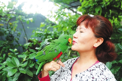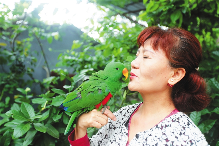 朋友告诉董阿姨这只折衷鹦鹉叫绿豆,并让她试着喊它的名字,试着和它交流。“绿豆,绿豆……”随着董阿姨轻声的呢喃,小鹦鹉摆摆头,亲昵地啄啄她的头发,可爱极了。“当时我心里想,就是它了,就属它和我最有缘分。”