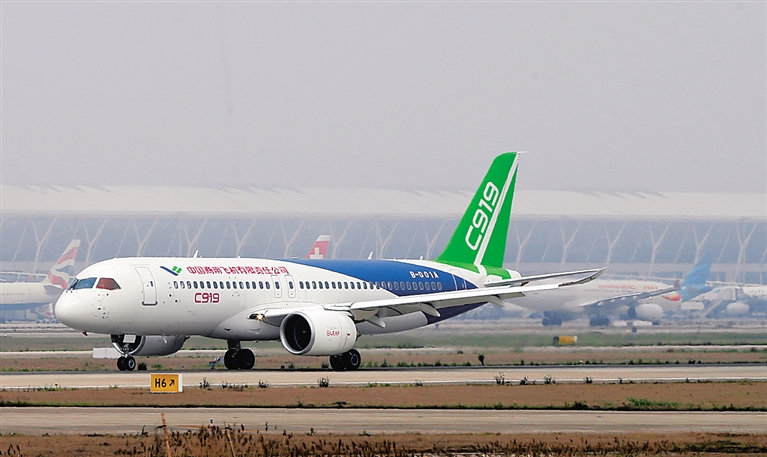 4月16日,国产大飞机C919在上海浦东国际机场4号跑道进行首次高速滑行测试。 当日,国产大飞机C919在上海浦东国际机场4号跑道进行了首次高速滑行测,测试顺利,跑道高滑测试是大飞机首飞前的最后一关。目前,首飞前的各项技术测试工作正在有条不紊的展开。 新华社发