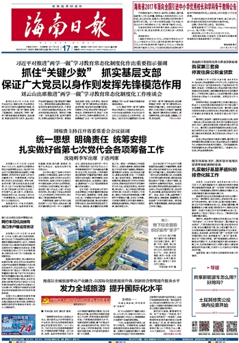 海南日报 头版 001 2017-04-171 2017年04月17日 星期一