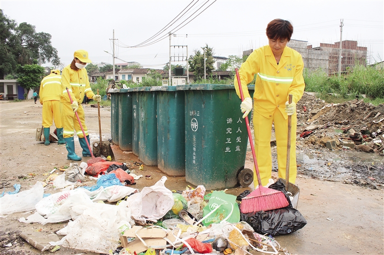2014年,超强台风“威马逊”袭击琼岛,儋州城区枝叶、垃圾满地。7月20日凌晨5时,狂风还在肆虐,暴雨还在倾泻,麦秀梅就穿着雨衣带领工友走上街头,在这场暴雨的清扫中,她与工友一直干到中午。