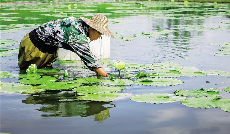 据介绍,去年3月7户农民引进台湾九品香水莲花,至今已有30户农民拿出自家稻田改种香莲。每亩种植70株香莲,每天可采摘40多朵鲜花。干品、鲜花全部销往上海、北京等地,每月收入千元。农民们看到了致富希望后,今年计划扩大种植面积百亩以上。本报记者 苏晓杰 通讯员 冼贺 摄