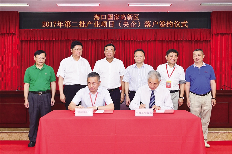 4月18日上午,在海口国家高新区2017年第二批产业项目(央企)落户签约仪式上,中房联合集团、中国食品工业投资担保有限公司、中冶冶金设备制造有限公司3家央企与海口国家高新区签约,前期投资逾42亿元的重大项目落户美安生态科技新城。