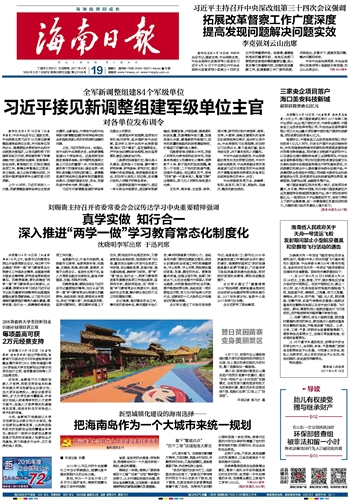 海南日报 头版 001 2017-04-191 2017年04月19日 星期三